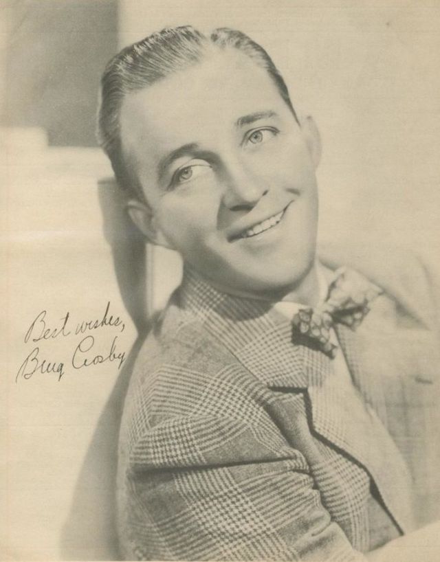 Born 1903 in Tacoma, Washington, American singer and actor Bing Crosby was a leader in record sales, radio ratings, and motion picture grosses from 1930 to 1954. He made over 70 feature films and recorded more than 1,600 songs. His early career coincided with recording innovations that allowed him to develop an intimate singing style that influenced many male singers who followed, such as Perry Como, Frank Sinatra, Dean Martin, Dick Haymes, Elvis Presley, and John Lennon.